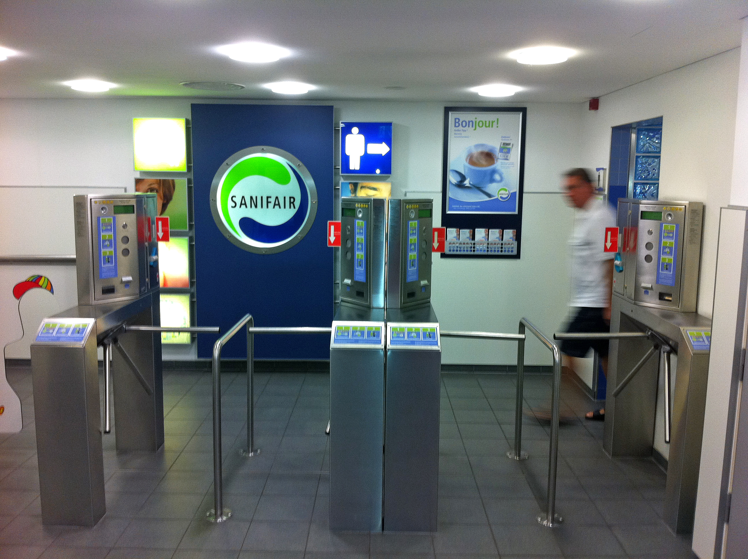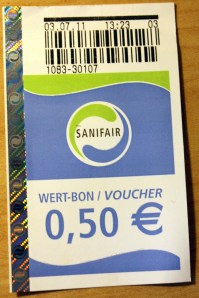 När man sedan går ut från toaletten får man en värdekupong på 50 cent att använda i kiosken eller på restauranten på rastplatserna.