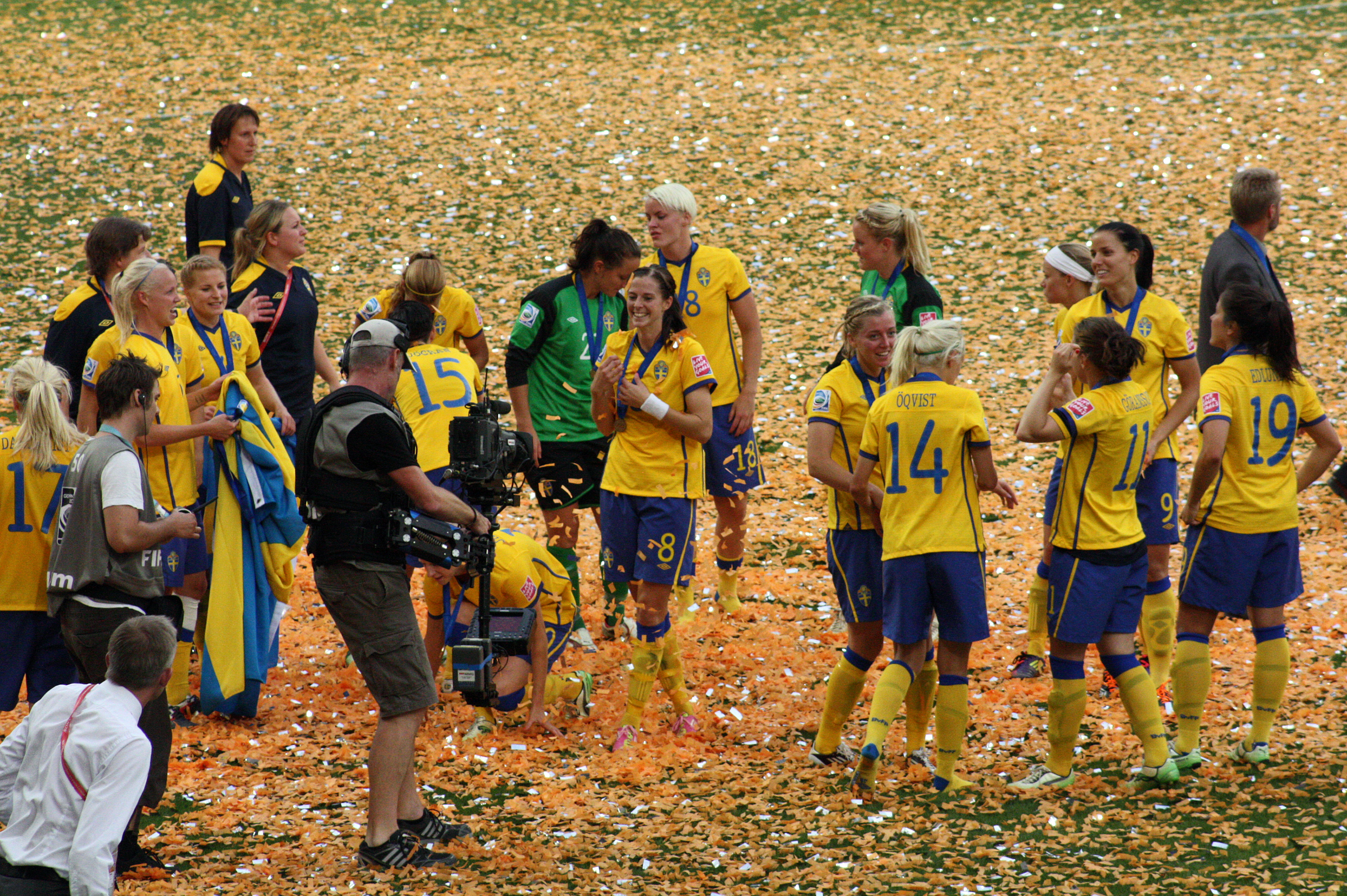 Konfettikrig och bronsjubel Publicerat 21 juli, 2011 kl. 3088 × 2056 i Bilder av svenskt bronsfirande Konfettikrig