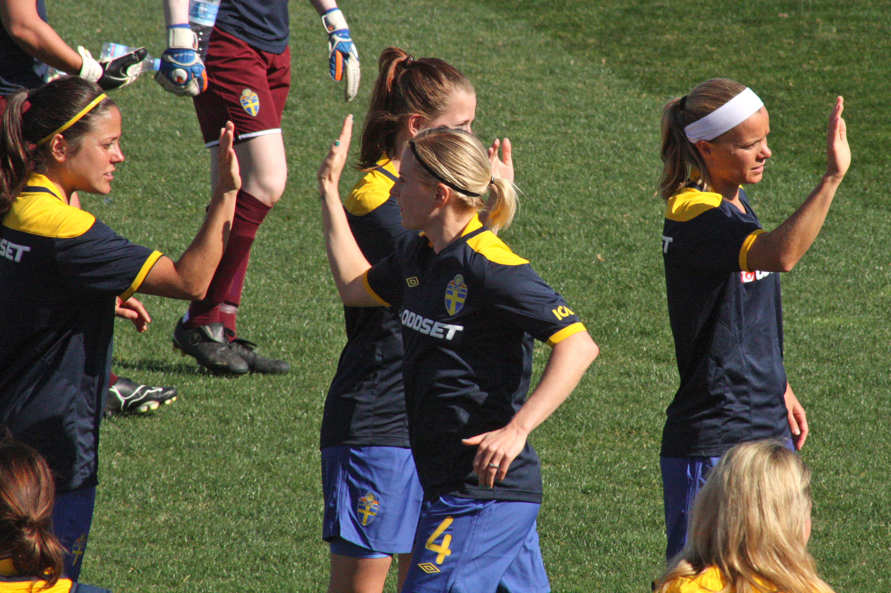 Annica Svensson kör handklapp Publicerat 15 maj, 2012 kl. 3088 × 2056 i Bilder av det svenska landslaget Annica Svensson gör high five med Madelaine Edlund, Emma Berglund och Sara Thunebro. Algarve cup 2012.