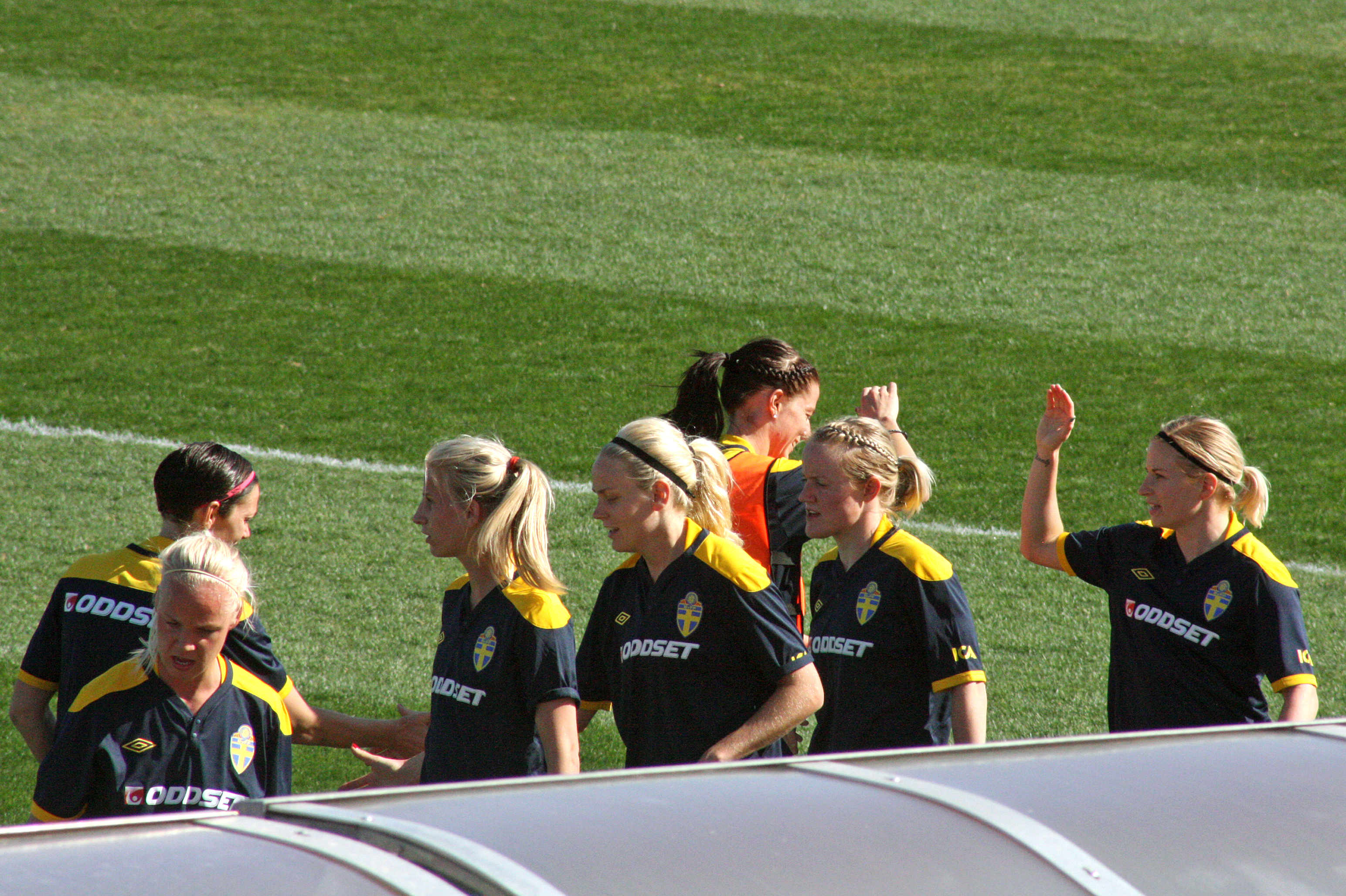 Mer handklapp Publicerat 15 maj, 2012 kl. 3088 × 2056 i Bilder av det svenska landslaget Therese Sjögran och Lotta Schelin kör handklapp med blonda kvintetten Caroline Seger, Sofia Jakobsson, Lisa Dahlkvist, Marie Hammarström och Annica Svensson. Algarve cup 2012.