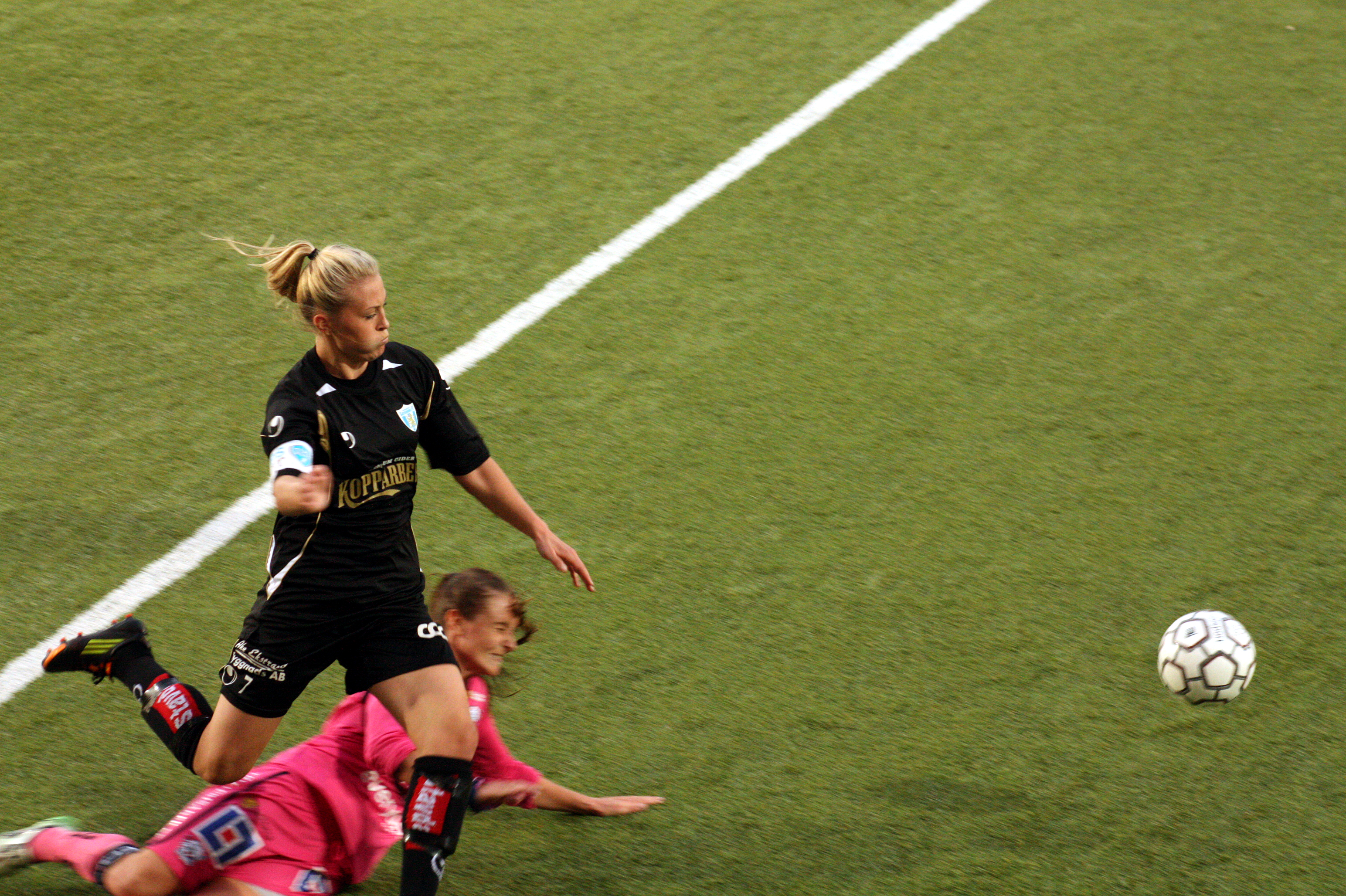 Mimmi Löfwenius Publicerat 21 september, 2012 kl. 3088 × 2056 i Bilder av Göteborg och Linköping Mimmi Löfwenius Mimmi Löfwenius lyckas hålla balansen trots att hon glidtacklas. Från Göteborg – Linköping 6-0 i damallsvenskan 2012.