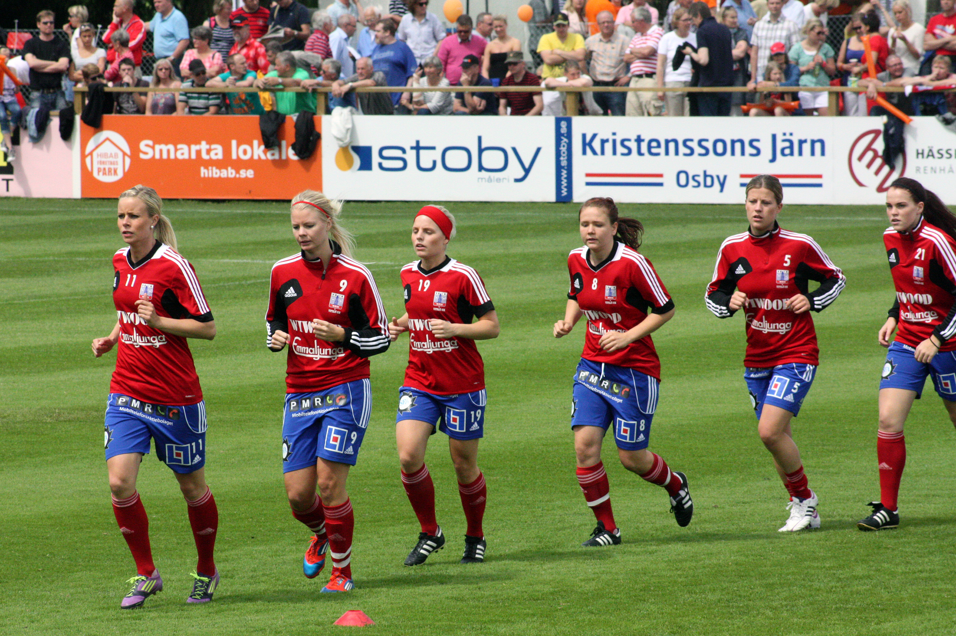 Vittsjö värmer 2 Publicerat 29 september, 2012 kl. 3088 × 2056 i Bilder av Vittsjö och Tyresö Vittsjöspelare på rad Vittsjö värmer upp. Från vänster: Sofie Andersson, Emma Sjödahl, Emma Unkuri, Ida Olsson, Malin Bornander och Malin Winqvist. Från matchen i damallsvenskan, Vittsjö-Tyresö 1-1 på Vittsjö Idrottspark den 30 juni 2012.