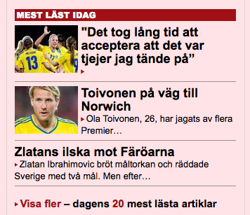Intresset för artikeln om Seger är för övrigt så stort att den en timme efter herrlandslagets VM-kval fortfarande toppar listan över dagens mest lästa artiklar på Aftonbladets sportsida.