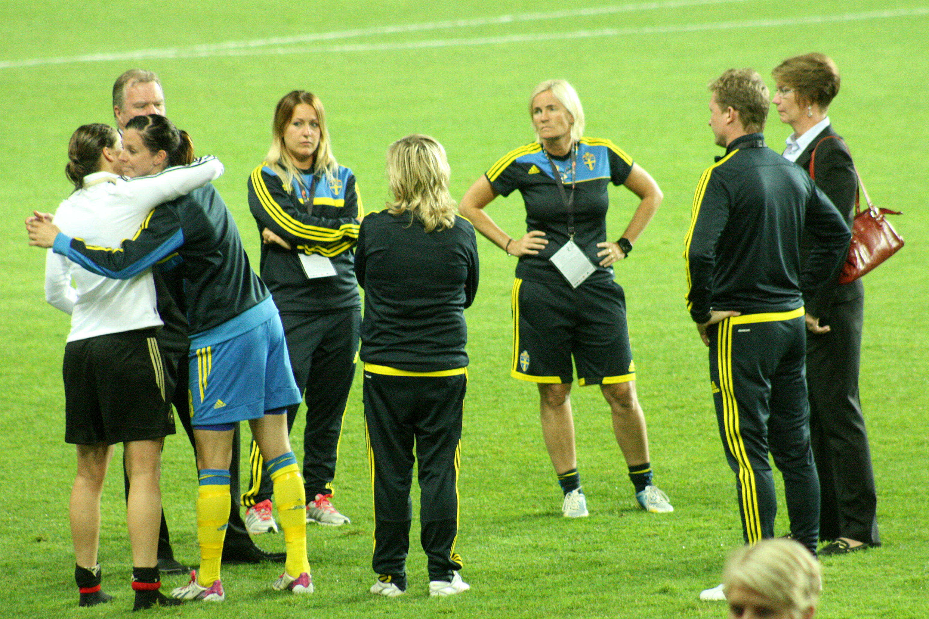 Krahn kramar Schelin Publicerat 26 juli, 2013 kl. 3088 × 2056 i Bilder av Tyskland Annike Krahn kramar Lotta Schelin. EM 2013, semifinal, Gamla Ullevi, Göteborg: Sverige–Tyskland 0–1. Schweden–Deutschland 0–1. Annike Krahn kramar om Lotta Schelin efter matchen.