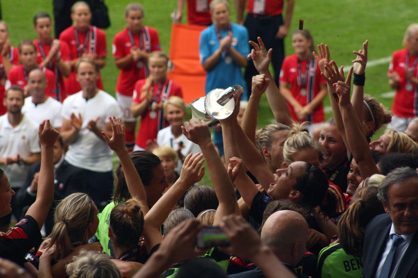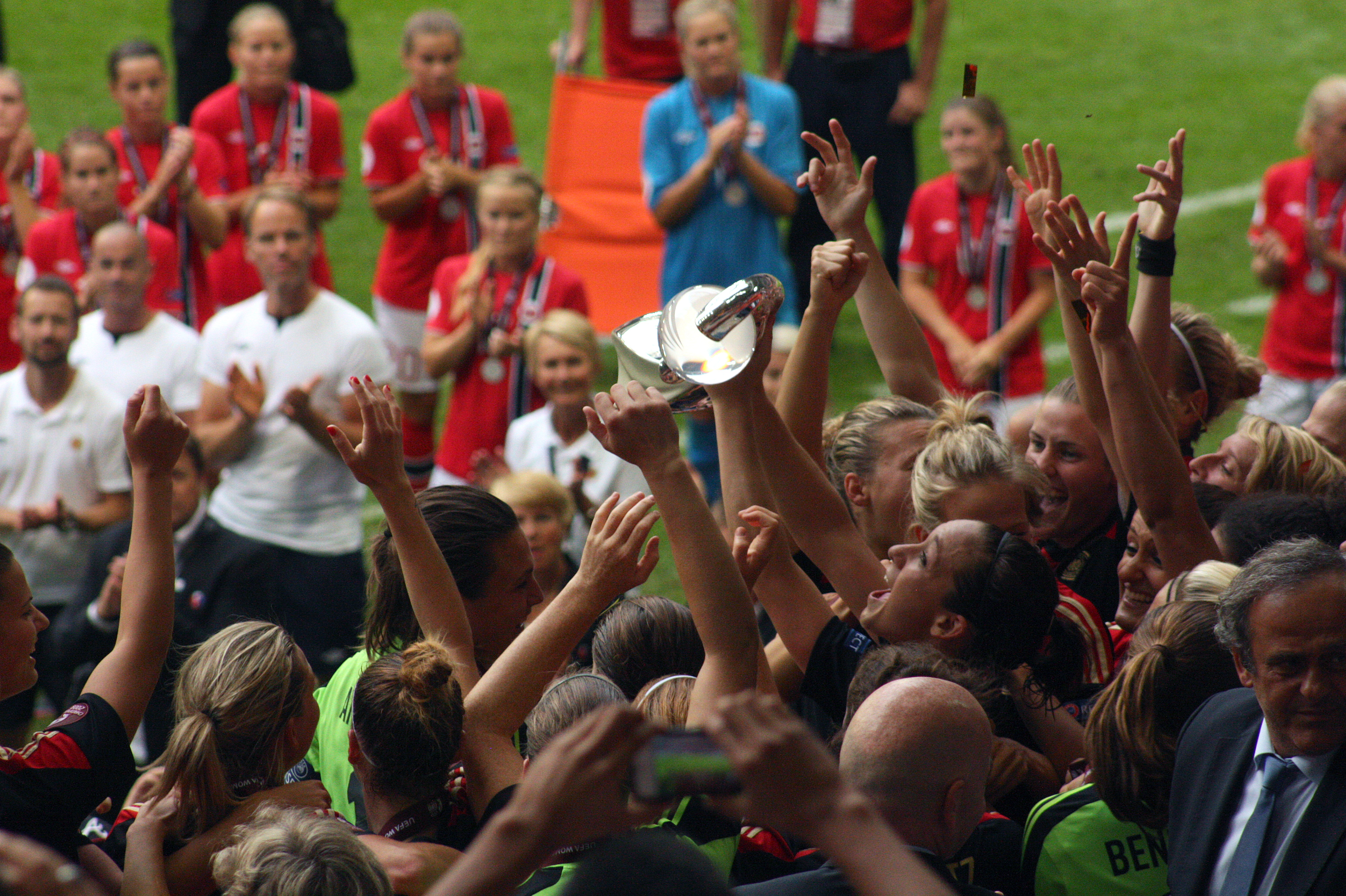 Pokalen mot luften Publicerat 31 juli, 2013 kl. 3088 × 2056 i Bilder av EM-finalen Nadine Kessler håller pokalen EM 2013, final, Friends Arena, Solna, Tyskland-Norge 1-0. Nadine Keßler med pokalen.
