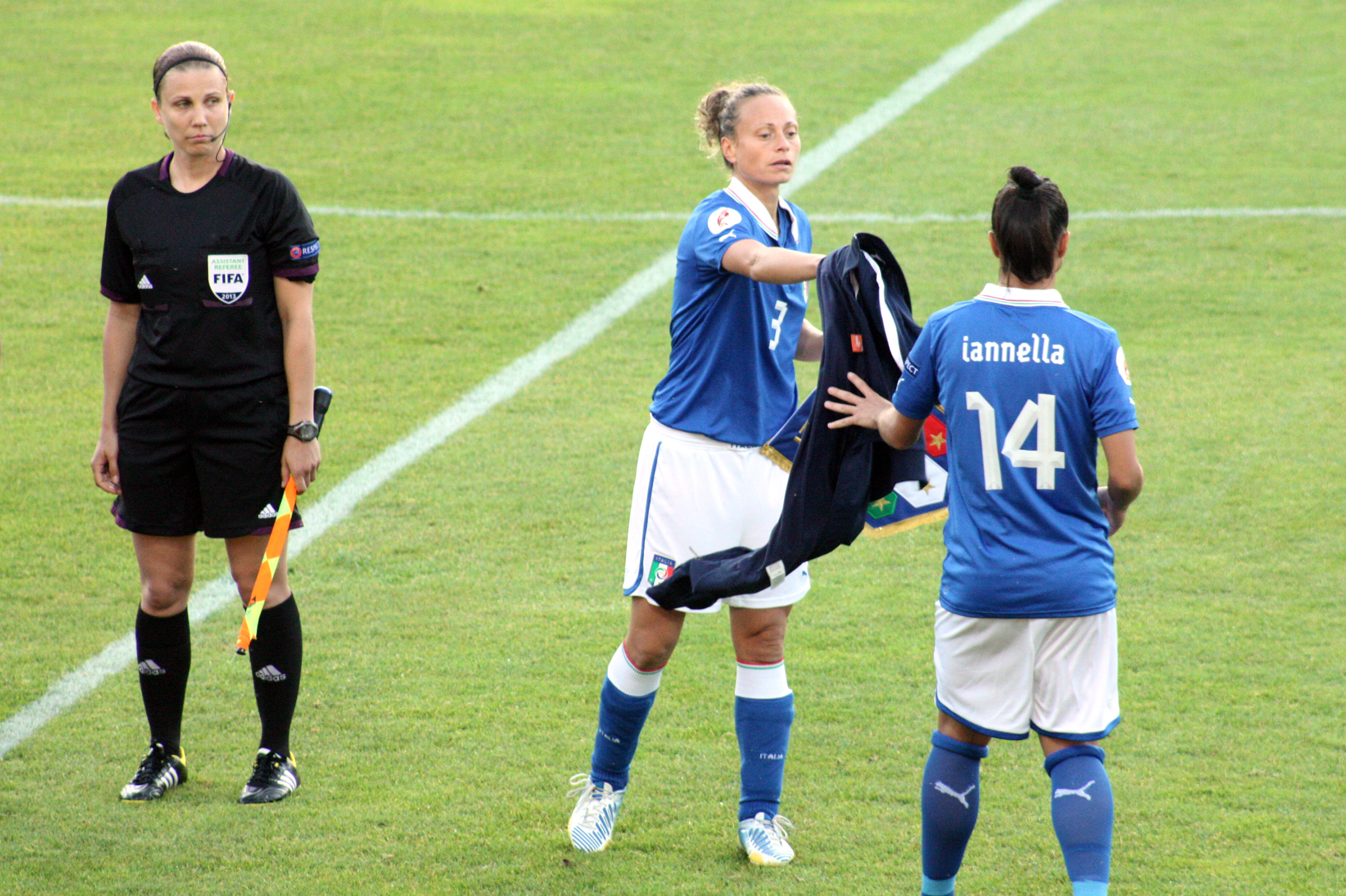 D’Adda och Iannella Publicerat 13 augusti, 2013 kl. 3088 × 2056 i Bilder av Italien Judit Kulcsar, Roberta D’Adda och Sandy Iannella. EM 2013. Sverige – Italien 3 – 1 på Örjans vall. Roberta D’Adda och Sandy Iannella. Domaren heter Judit Kulcsár