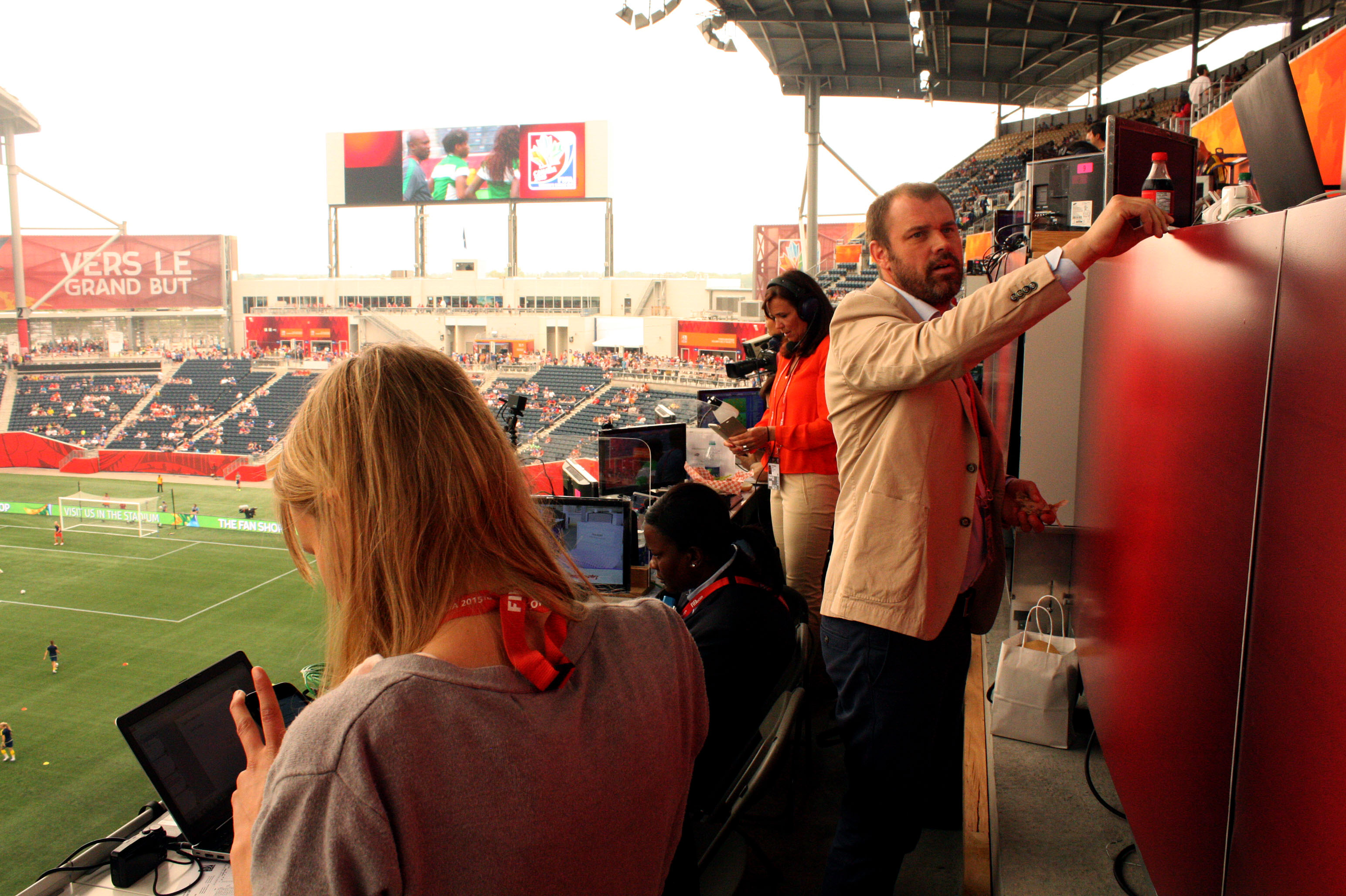 Pressläktaren Publicerat 15 juni, 2015 kl. 3088 × 2056 i Bilder av VM – och några skador TV4:s kommentatorer gör sig redo VM 2015, WWC 2015, Women’s World cup 2015 in Canada, TV4, Daniel Kristiansson och Malin Swedberg