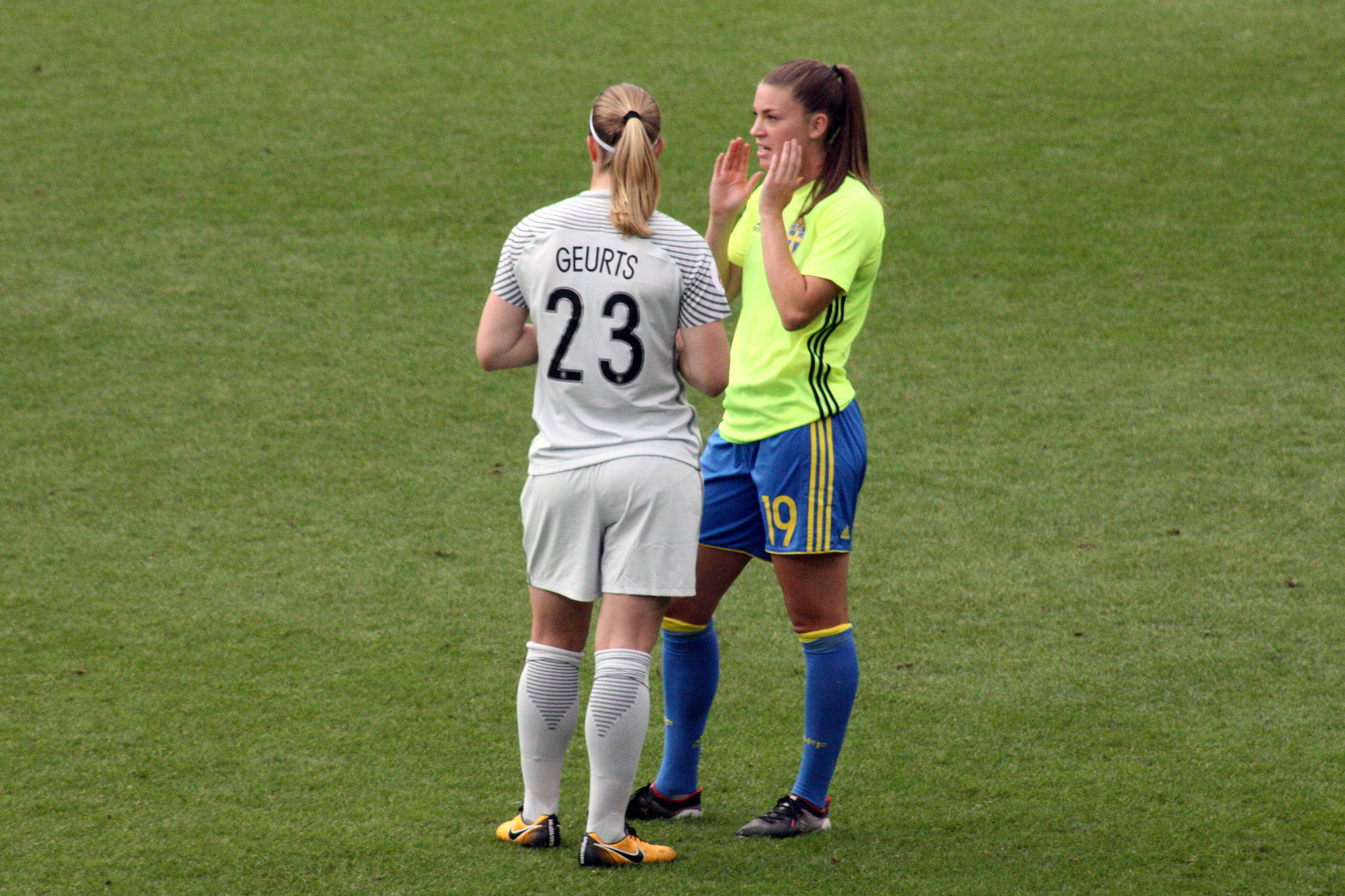 Pallo pratar med Geurts Publicerat 20 januari, 2018 kl. 4272 × 2848 i Bilder av 2017 – del 5, EM-kvartsfinaler Loes Geurts och Pauline Hammarlund. WEuro2017. EM i damfotboll. Nederländerna, Holland, Netherlands, Niederlande, Nederland. Sweden, Sverige, Schweden.