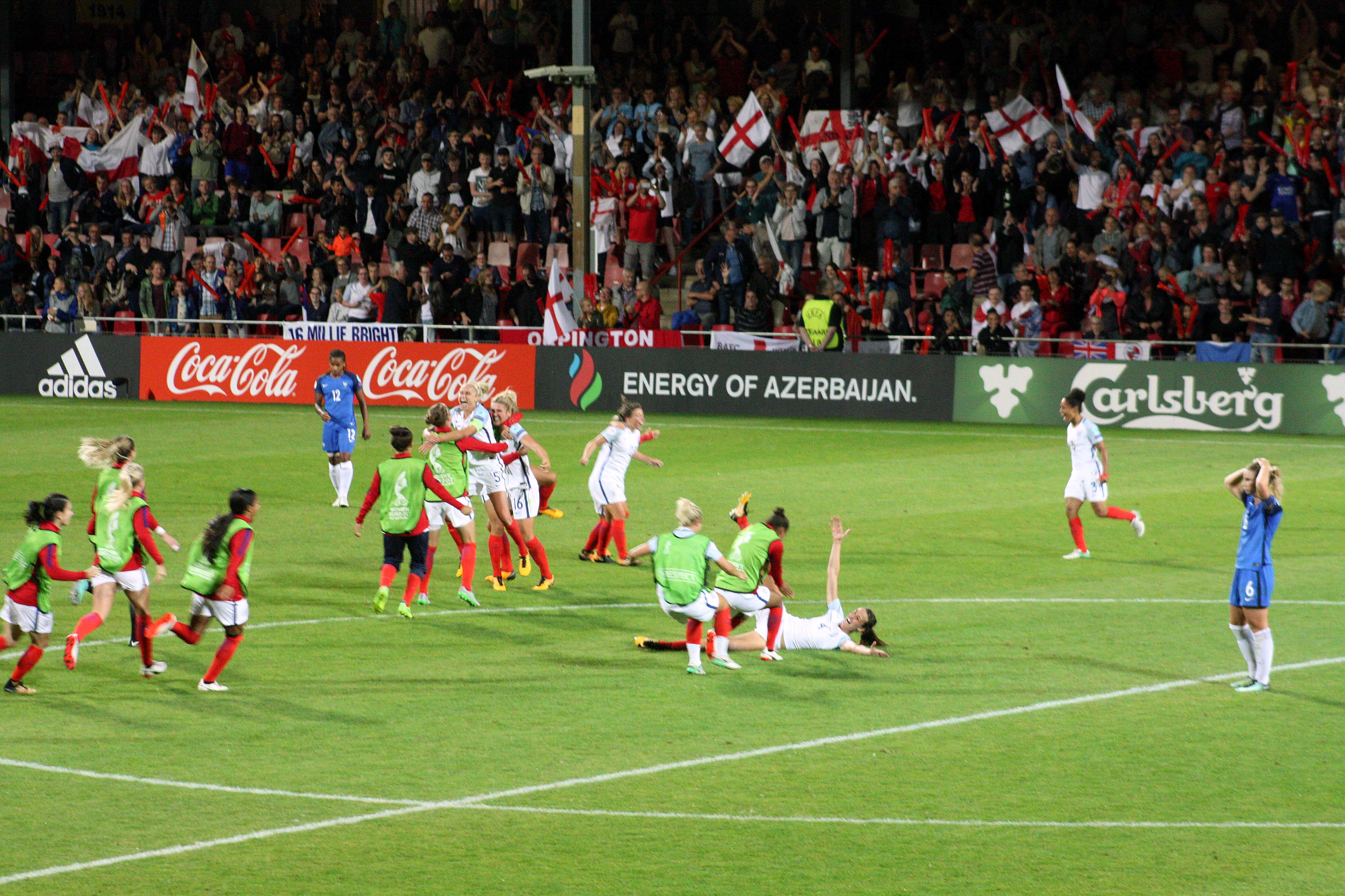 Engelsk segerglädje 2 Publicerat 20 januari, 2018 kl. 4272 × 2848 i Bilder av 2017 – del 5, EM-kvartsfinaler England firar WEuro2017. EM i damfotboll. England. Frankrike, France, Frankreich. Lionesses.