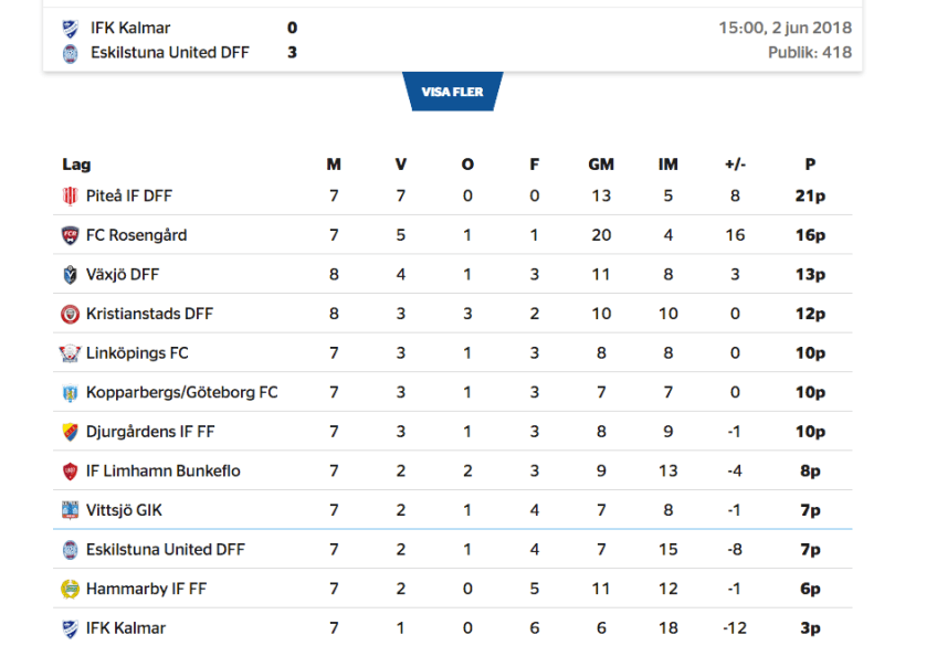Förbundets tabell Publicerat 16 juni, 2018 kl. 953 × 679 i Det jämnar till sig Damallsvenskans tabell på svenskfotboll.se