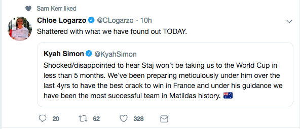 Tweets från The Matildas Publicerat 19 januari, 2019 kl. 592 × 255 i Många frågetecken kring avskedandet av Stajcic Reaktioner från tre landslagsspelare på att Stajcic sparkats.