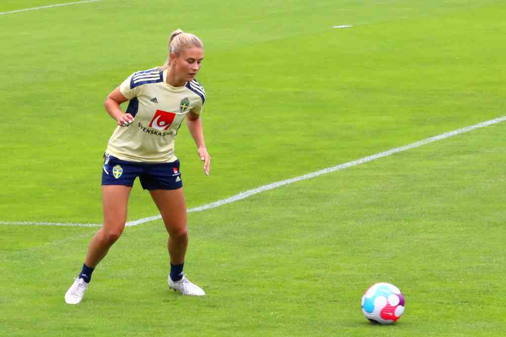 Nämnda Williamson är bra på att spela genom lagdelar med sin fina högerfot. Hon skall helst inte få slå passningar in i straffområdet ostörd. Men tydligt var att Sverige hade större respekt för Walshs spelvändningar – och för Millie Brights långpassningar. För Stina Blackstenius låg hela tiden tätt på Bright, vilket gjorde att Williamson fick mycket tid med bollen.