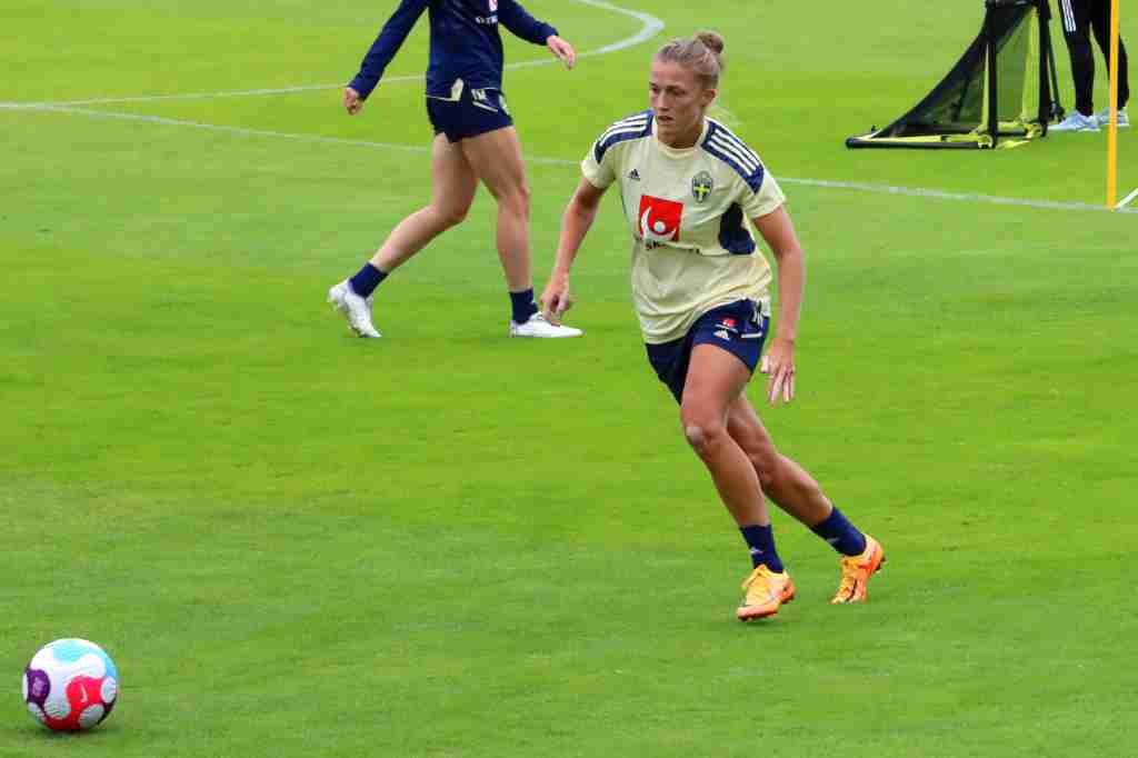 45 sekunder senare kunde vi haft ytterligare en svensk målchans när Rolfö vann bollen centralt, högt upp i planen. Det var i princip tre mot en, och både Asllani och Lina Hurtig gjorde fina löpningar. Rolfö försökte dock inte frispela någon av sina lagkpmpisar, och drog istället iväg ett högt lobbförsök, som aldrig kändes riktigt farligt.