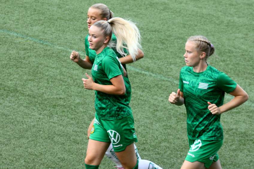 Bajentrio Publicerat 2 september, 2025 kl. 2356 × 1571 i Bilder av damfotbollssommaren 2025 Smilla Holmberg, Anna Jøsendal och Julie Blakstad, Hammarby IF.
